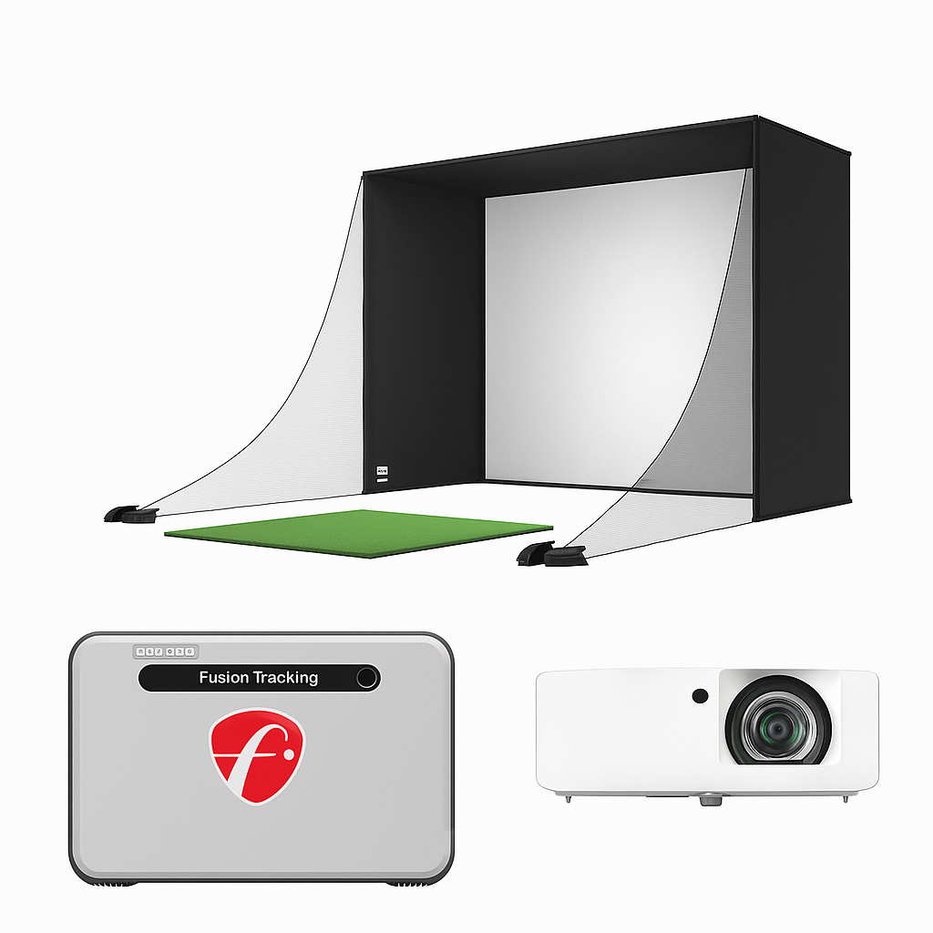 The EdgeFlight Apex S350 Golf Simulator Studio is a high-end, portable bay engineered for precise practice and immersive play. Its reinforced soft-wall enclosure houses a low-rebound impact screen, ceiling-mounted 4K laser projector, and an overhead stereo-camera tracker for tour-level shot data. A tri-panel turf system with landing pad, corner ballast weights, and a slim side stand for laptop or tablet control create a clean, professional setup suited to homes, coaching studios, and luxury venues.